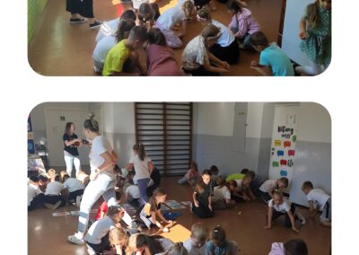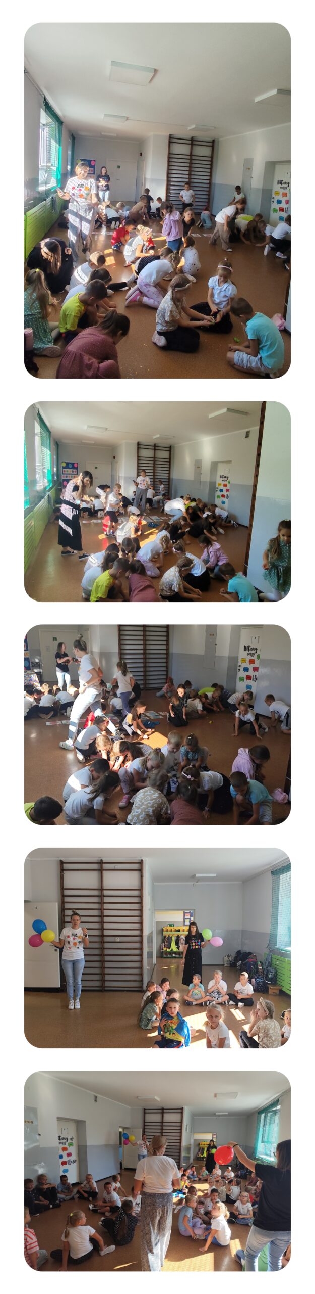 Uczniowie klas 1–3 integrowali się poprzez wspólne zabawy, grę w klasy, tworzenie barwnych prac plastycznych oraz zbieranie kropek. Starsze klasy w czasie zajęć zastanawiały się nad tym, jak ważna może być nawet najmniejsza kropka i co symbolizuje w naszym życiu.