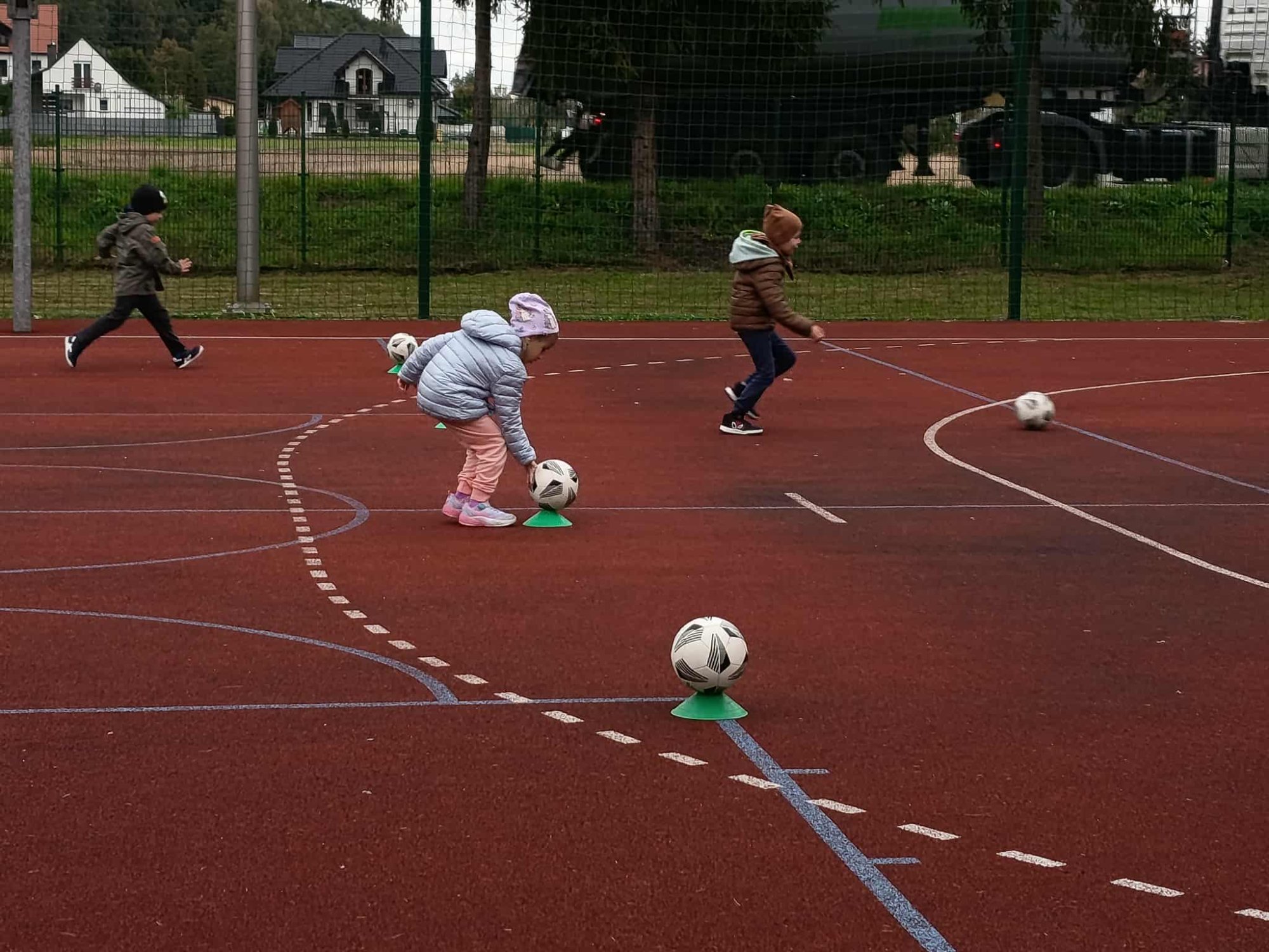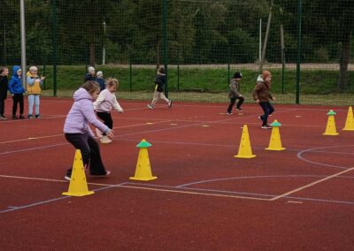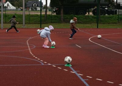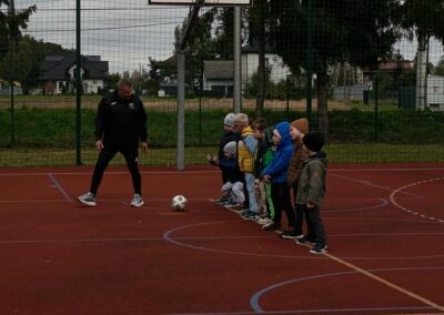 Podczas kolejnych zajęć ruchowych z trenerem LKS-u, dzieci nie dały się jesiennej aurze! Mimo chłodniejszej pogody, przedszkolaki z ogromnym entuzjazmem uczestniczyły w różnorodnych aktywnościach sportowych na świeżym powietrzu.