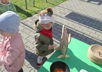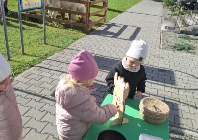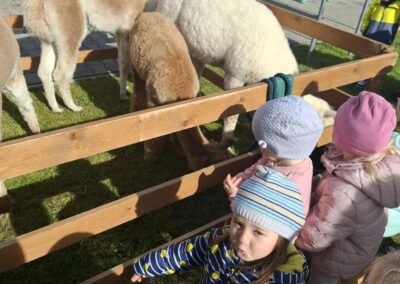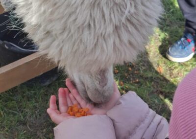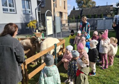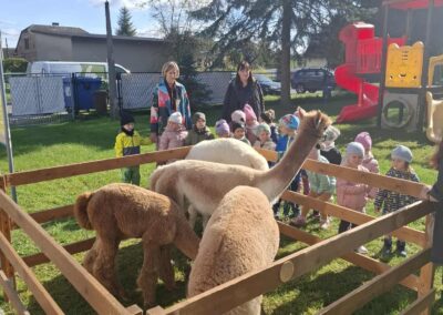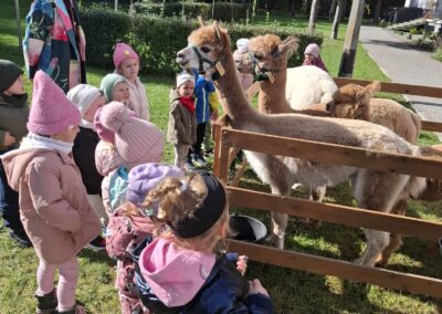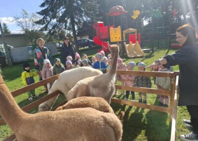 Przedszkolaki wśród alpak – W pięknej, jesiennej scenerii naszego placu zabaw, dzieci spędziły czas z alpakami, ucząc się o ich zwyczajach i sposobie życia. Spotkanie było pełne śmiechu, ciekawych pytań i niezapomnianych chwil.