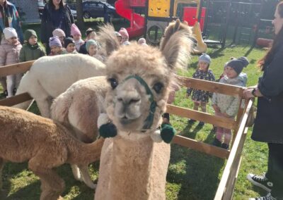 Urocze chwile z futrzastymi przyjaciółmi – Pierwsza grupa przedszkolna odkrywała świat alpak z bliska – dzieci były zachwycone ich miękkim futerkiem i łagodnym usposobieniem. To był dzień pełen emocji i nowych doświadczeń!