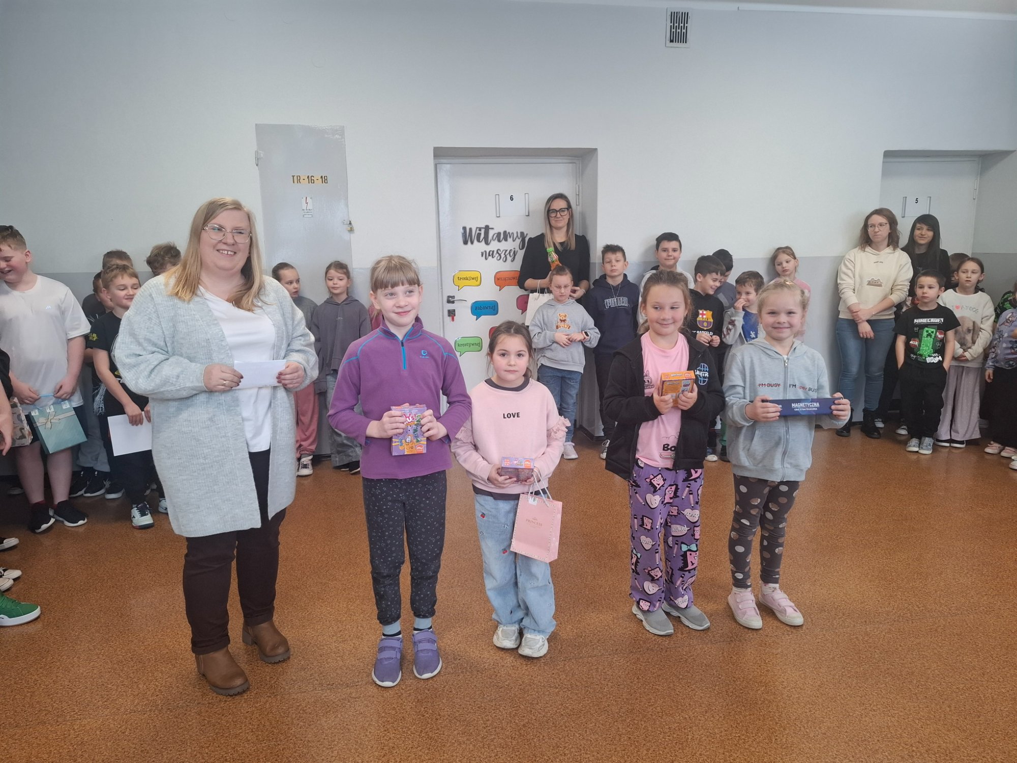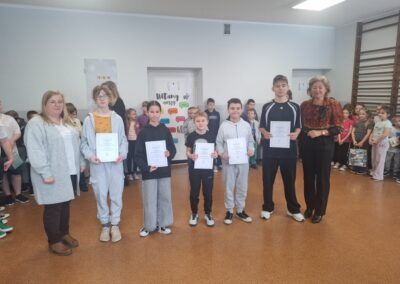 W trakcie uroczystości nastąpiło również wręczenie upominków laureatom konkursów matematycznych „Alfik” i „Kalendarz adwentowy” oraz konkursu ekologicznego „Uwalniamy nasze środowisko od zużytych baterii”. Uczniowie wykazali się dużą wiedzą, kreatywnością oraz wrażliwością na potrzeby środowiska naturalnego.