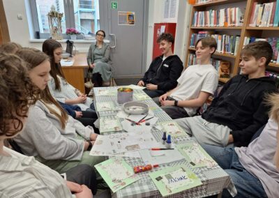 Uczniowie klasy 8 naszej szkoły mieli okazję odwiedzić bibliotekę w Zasolu, gdzie uczestniczyli w niezwykle ciekawych i inspirujących zajęciach. Spotkanie rozpoczęło się od rozmowy na temat pochodzenia imion, ich znaczenia oraz psychologicznego wpływu, jaki mogą wywierać na człowieka. Uczniowie dowiedzieli się, skąd wywodzą się ich imiona, co oznaczają oraz jakie cechy charakteru są im przypisywane.